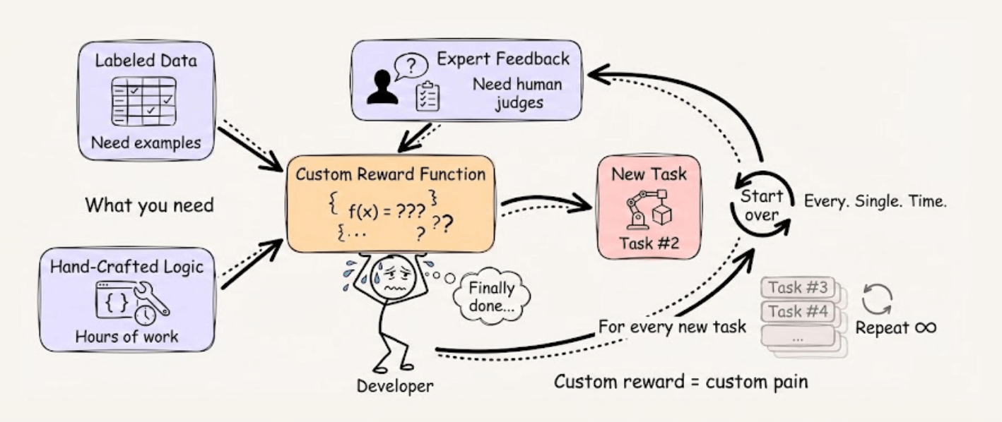 Training LLM agents with RL typically requires writing custom reward functions, which means you need labeled data, expert feedback, or hours spent hand-crafting reward logic for every new task.