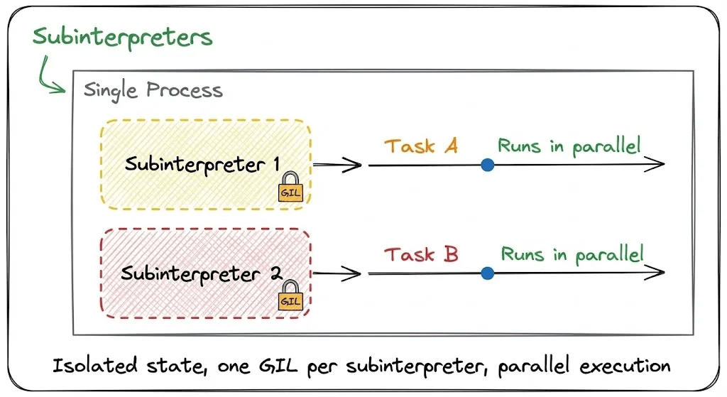Subinterpreters lose their main differentiator. They still offer global state isolation, but the performance advantage fades.