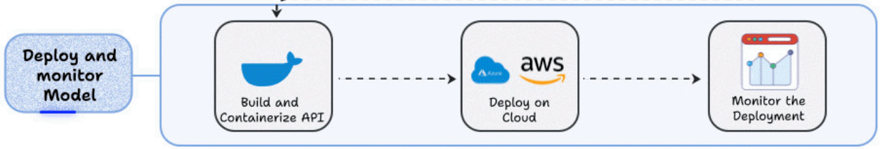 Finally, you containerize it, deploy it to the cloud (AWS, GCP, Azure), and set up monitoring.