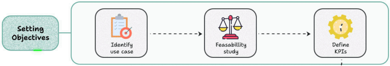 This means identifying the use case, running a feasibility study, and defining your KPIs upfront.