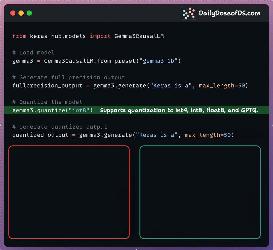 You can either quantize your own models or any pre-trained model obtained from KerasHub.