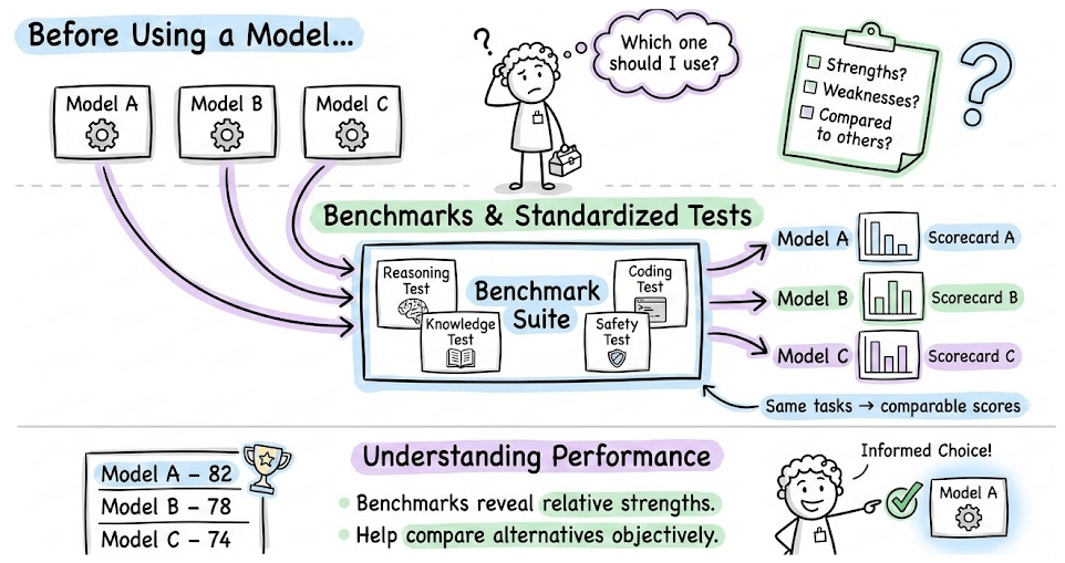 Understanding model benchmarks, LLM application evaluation, and tooling.