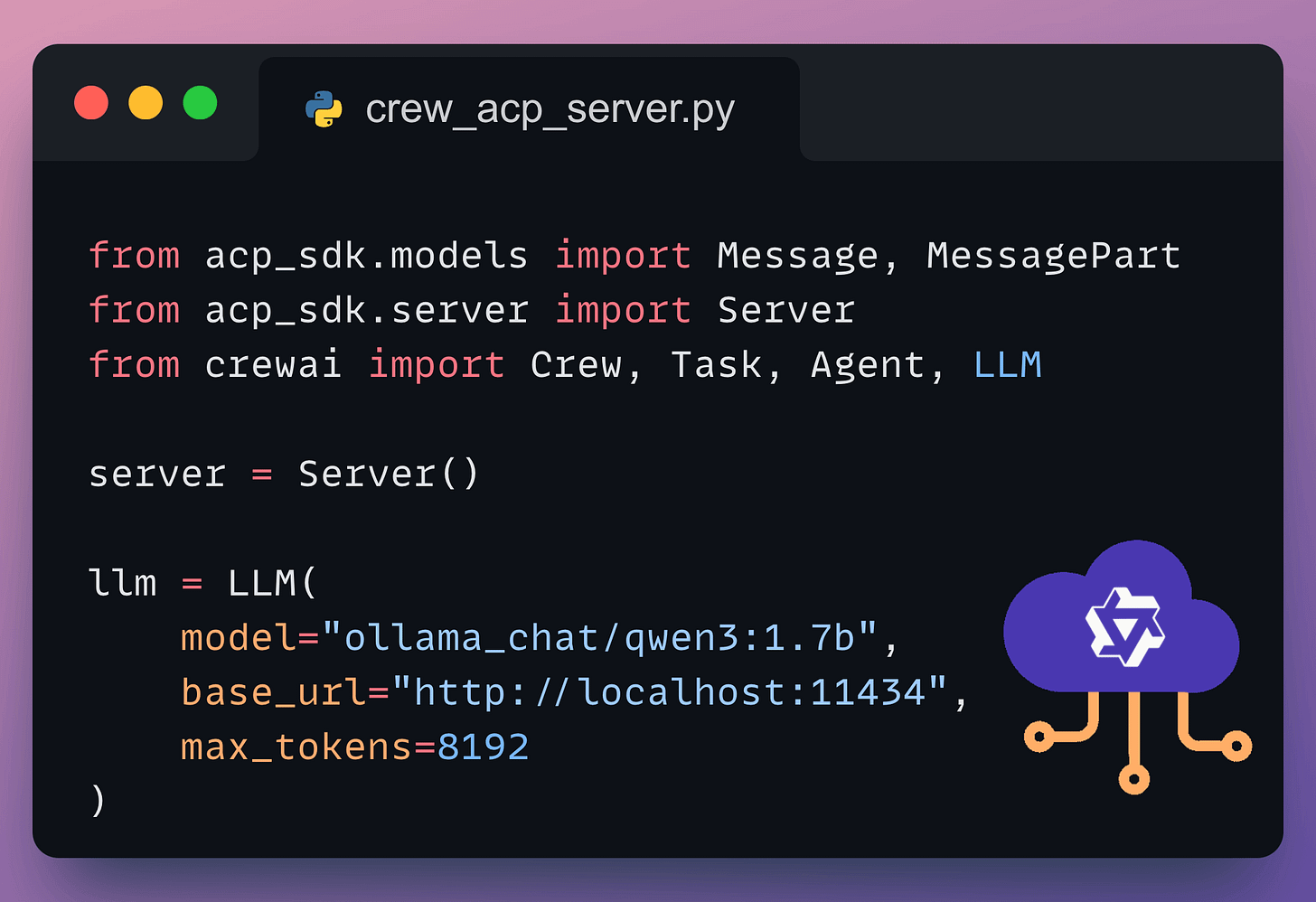 Let’s define the server that will host the CrewAI Agent and its LLM: