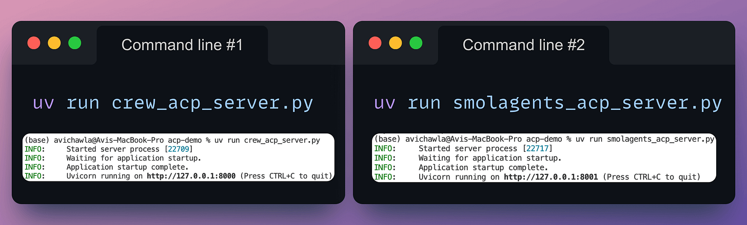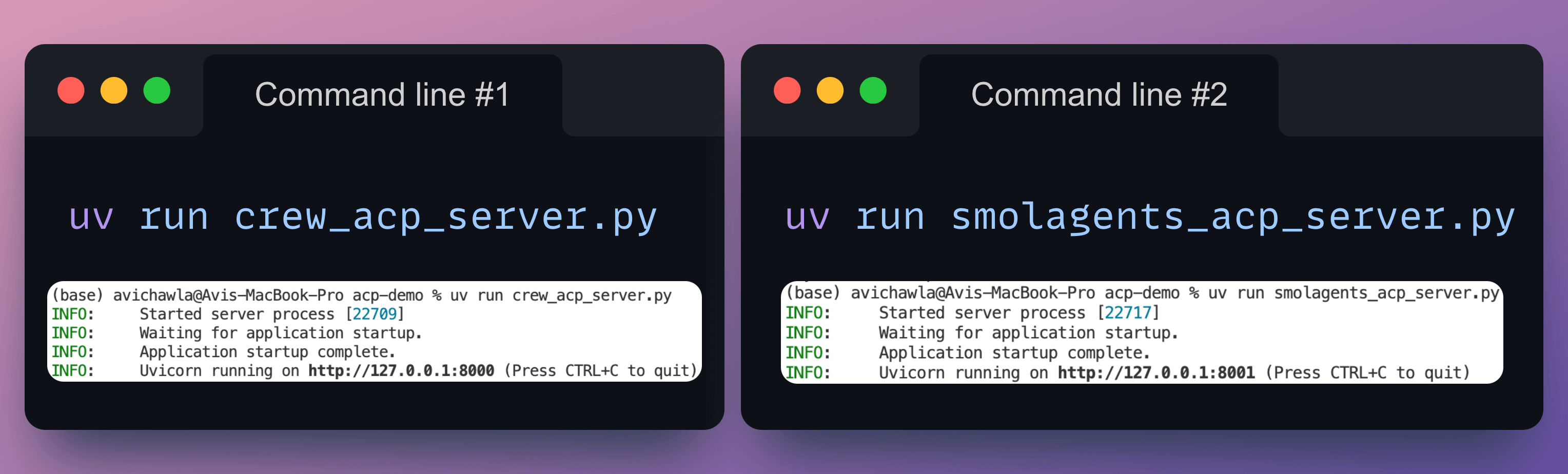 This demo showcases how you can use ACP to enable Agents to communicate via a standardized protocol, even if they are built using different frameworks.