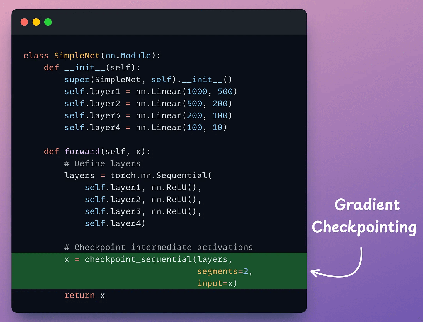 On a side note, while activation checkpointing is one way, we covered 15 techniques to optimize neural network training here: 15 Ways to Optimize Neural Network Training (With Implementation).