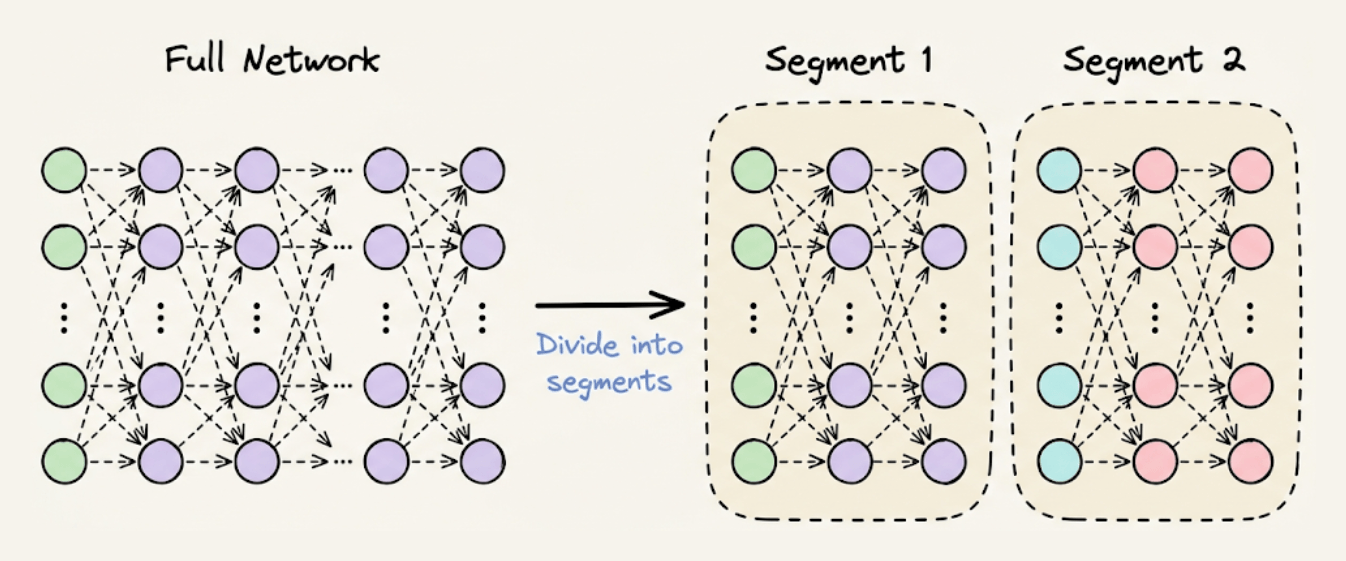 Step 1) Divide the network into segments before the forward pass: