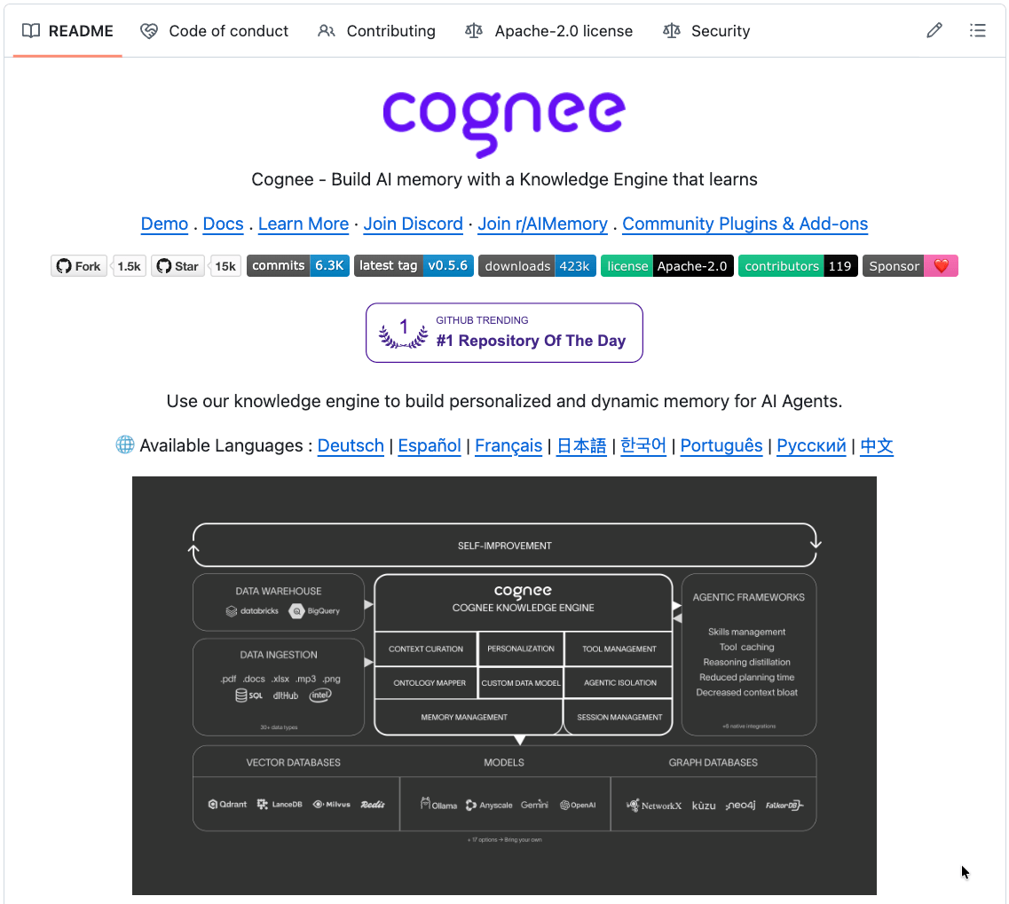 All this is actually implemented in Cognee, a popular open-source knowledge engine (~15k stars) that provides a graph-based, self-improving memory system for your agents.
