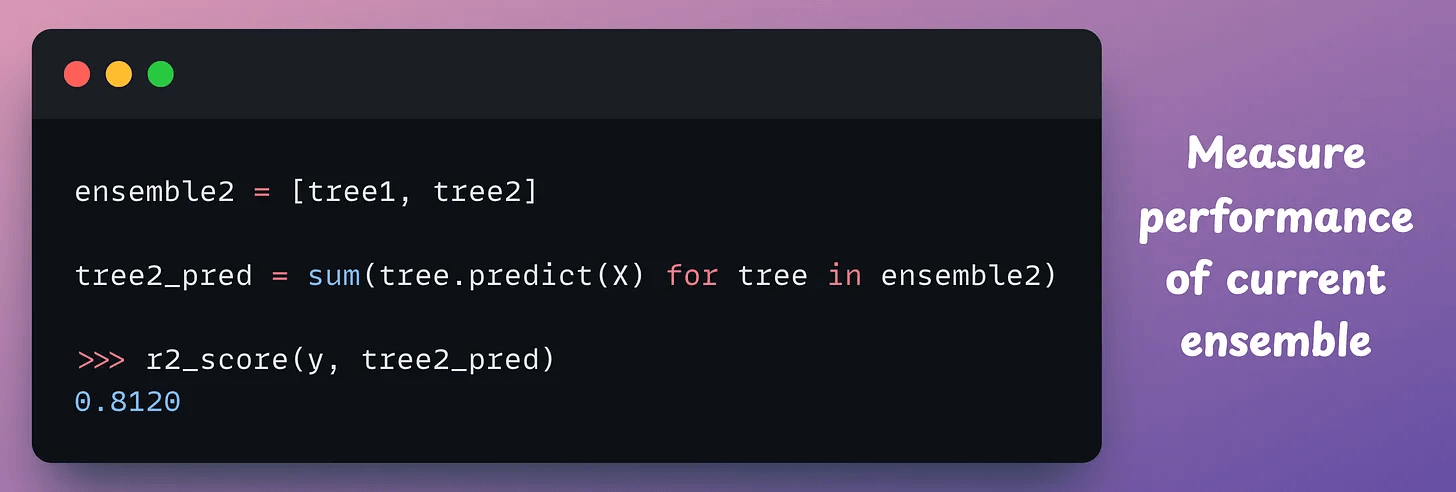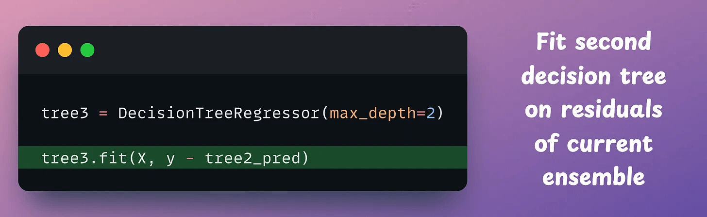 Now, let’s construct another tree on the residuals (true-predicted) of the current ensemble: