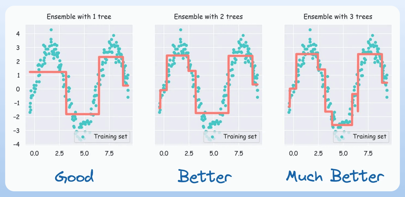 You can vary the design choice of these three factors to get a different boosting algorithm (read this to learn how XGBoost does it, with from-scratch Python code).