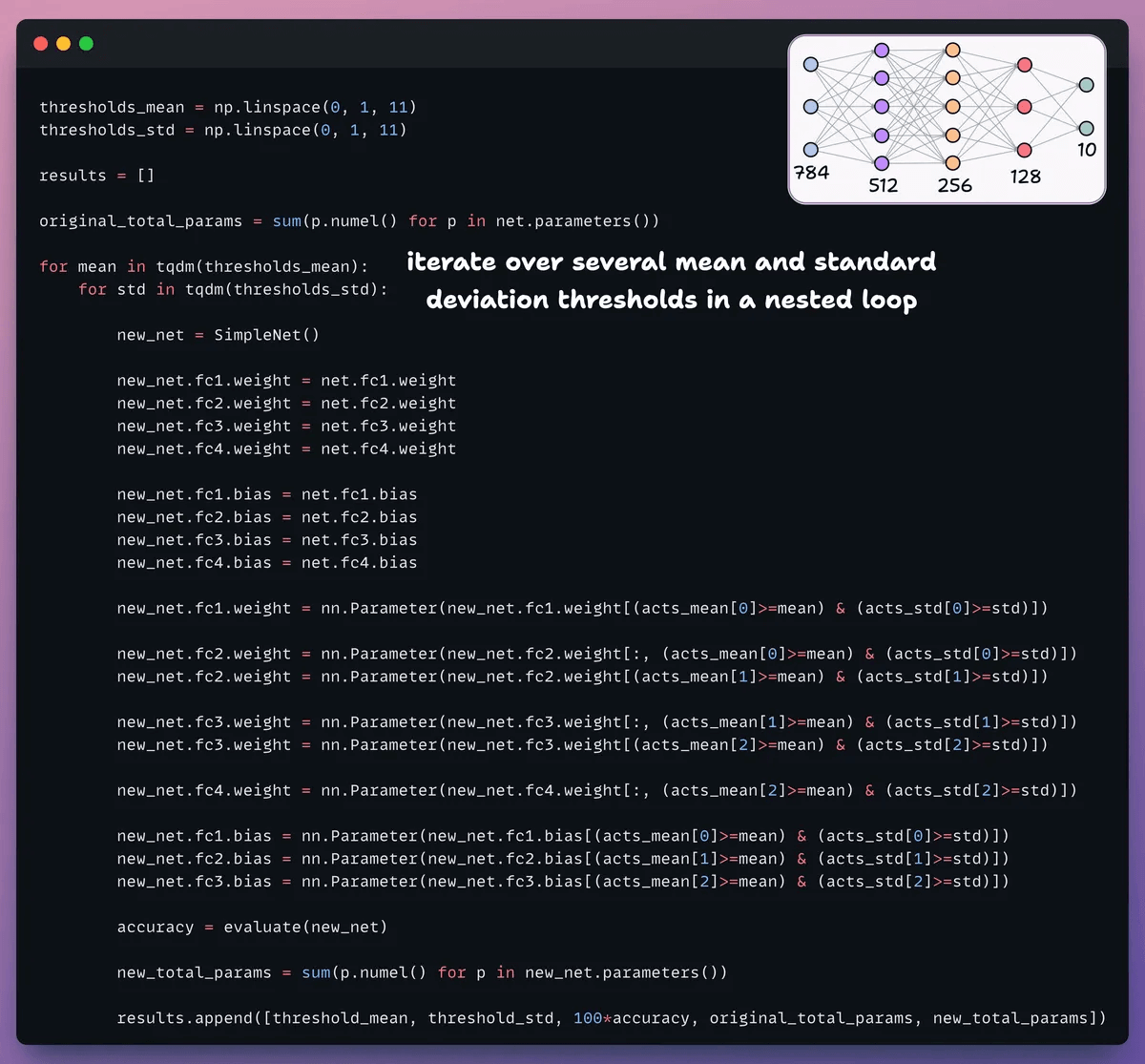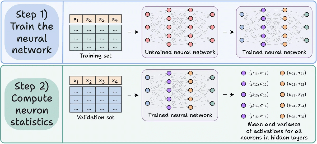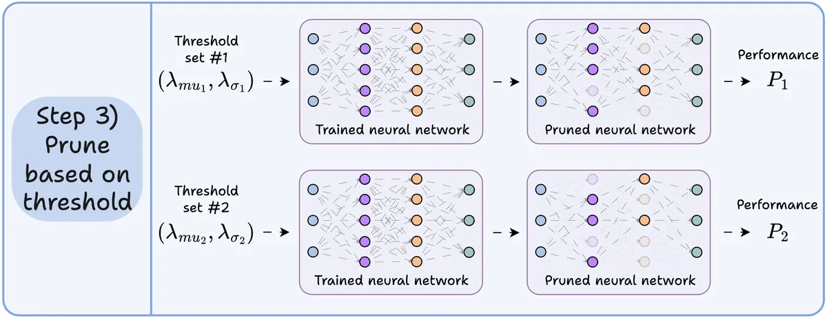 Step 3) Prune neurons that have a near-zero activation mean and variance since they have little impact on the model’s output.