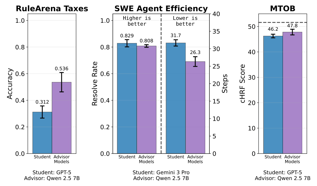 To test it, they found that GPT-5 scored 31.2% on a tax-filing benchmark. But adding the trained advisor took that to 53.6%.