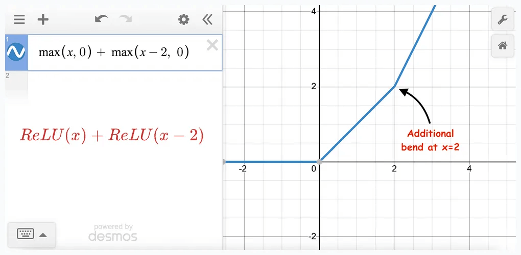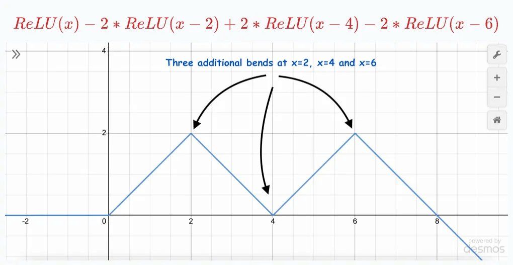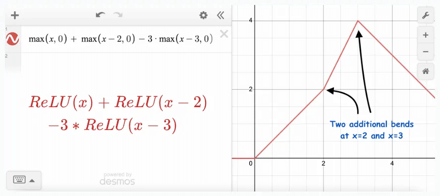 This indicates we can add more and more ReLU terms, each shifted and multiplied by some constant, to estimate any function, linear or non-linear: