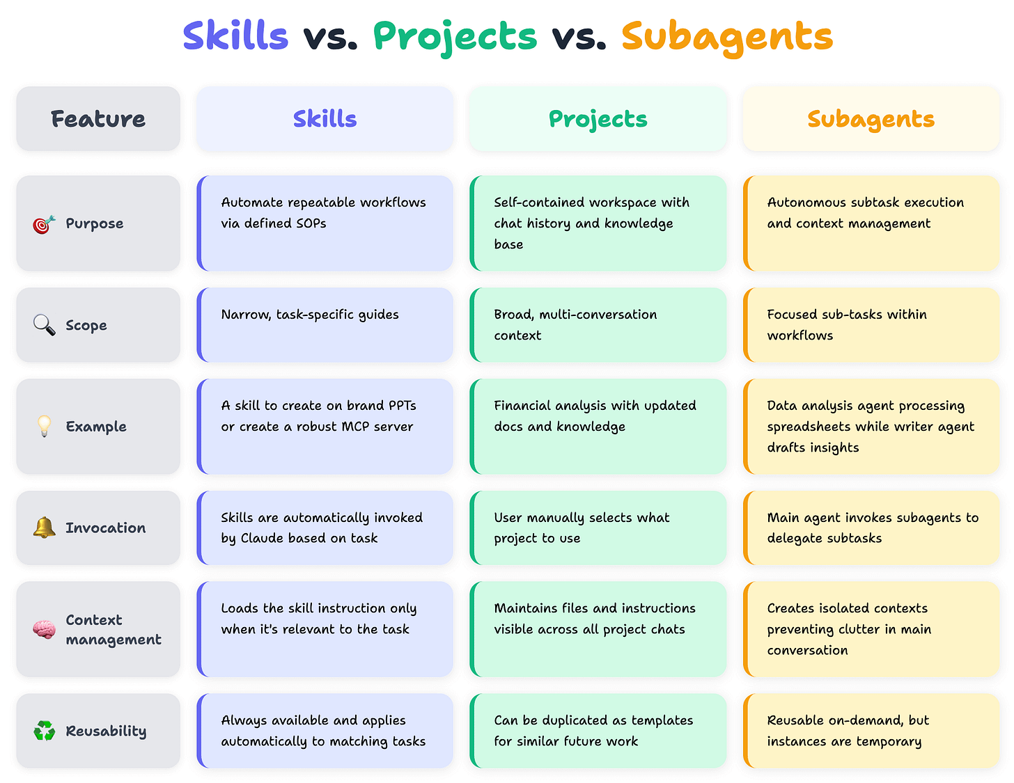 Skills vs. MCP vs. Projects vs. Subagents