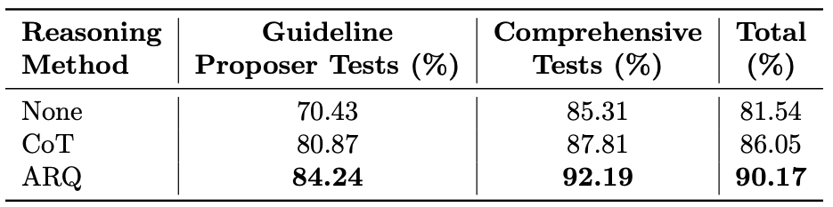 Instead of letting LLMs reason freely, ARQs guide them through explicit, domain-specific questions.