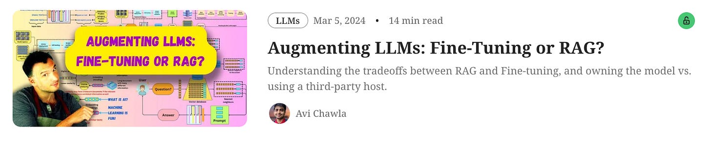 In today’s machine learning deep dive, he is providing a detailed discussion on RAG vs. Fine-tuning: Augmenting LLMs: Fine-Tuning or RAG?