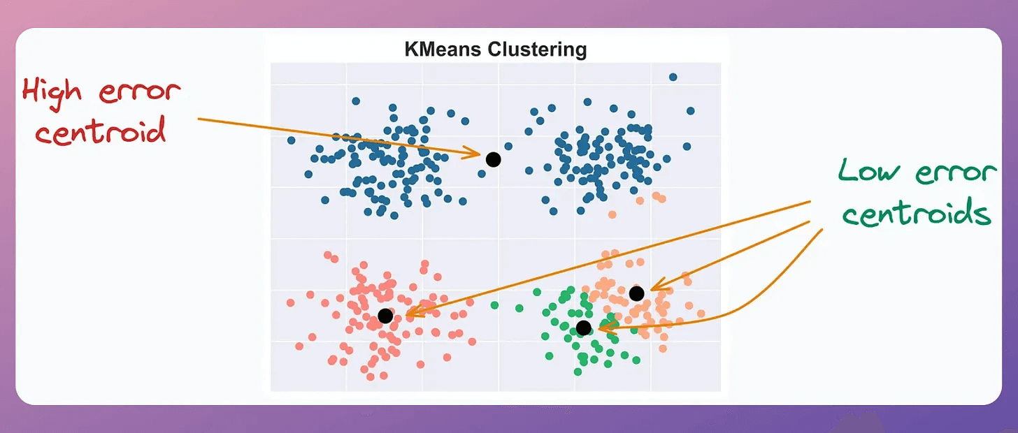 ” existing centroids. A centroid’s error is the sum of the squared distance to its associated points.