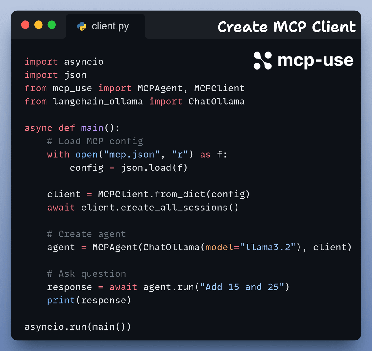 Next, we build a client using mcp-use, powered by locally running LLMs.