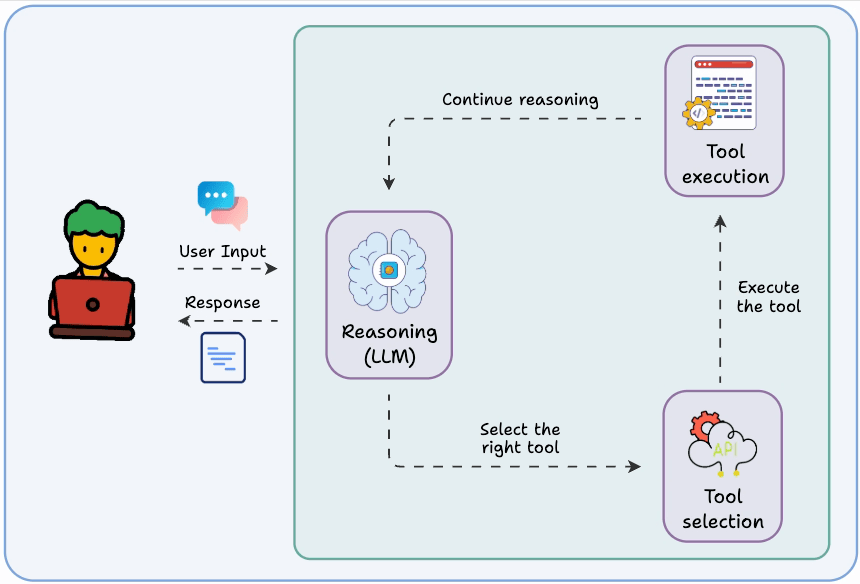 You define the goal, provide tools, and allow the agent to decide how to get there.