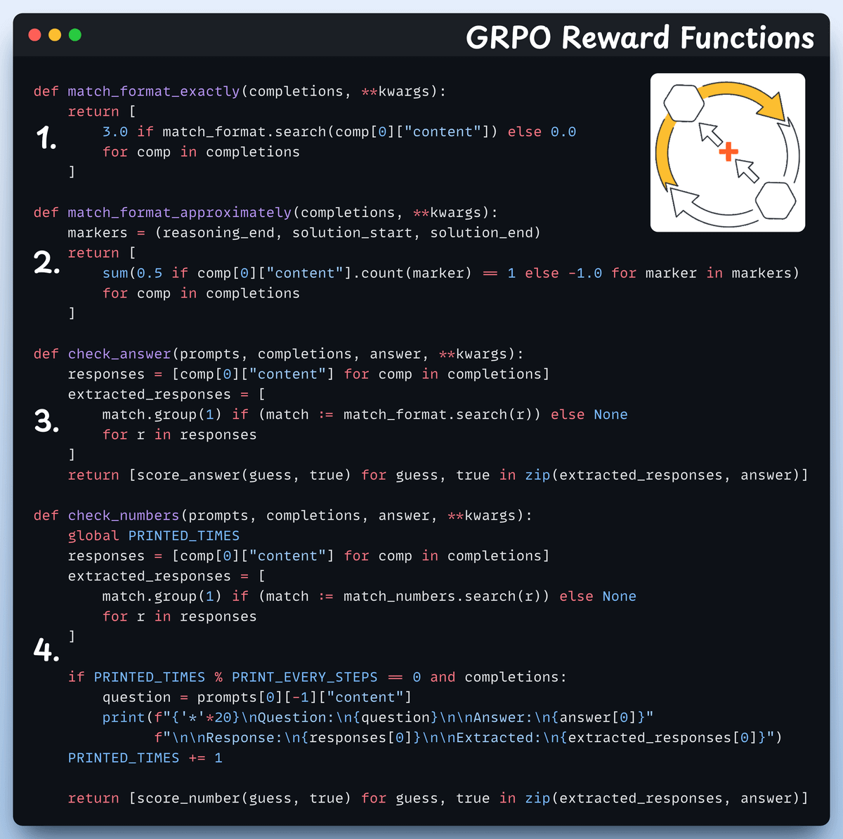 Now that we have the dataset and reward functions ready, it's time to apply GRPO.