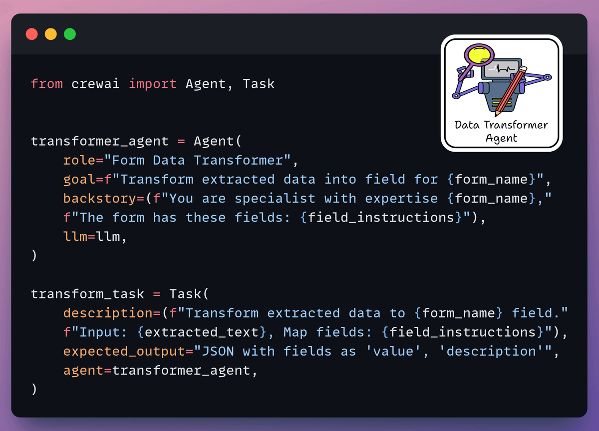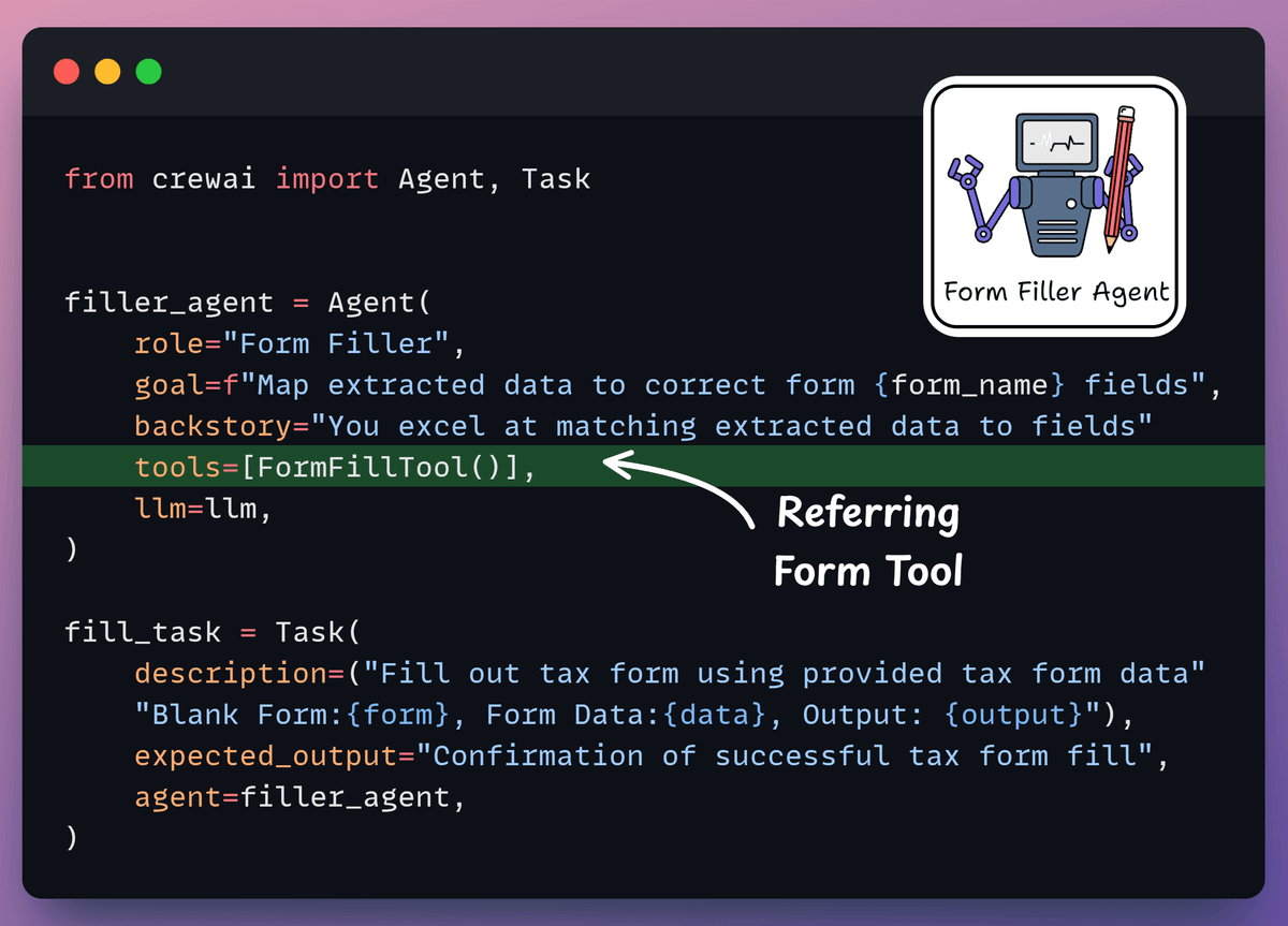 Agent processes raw data, transforming it into the exact field format required by the tax form.