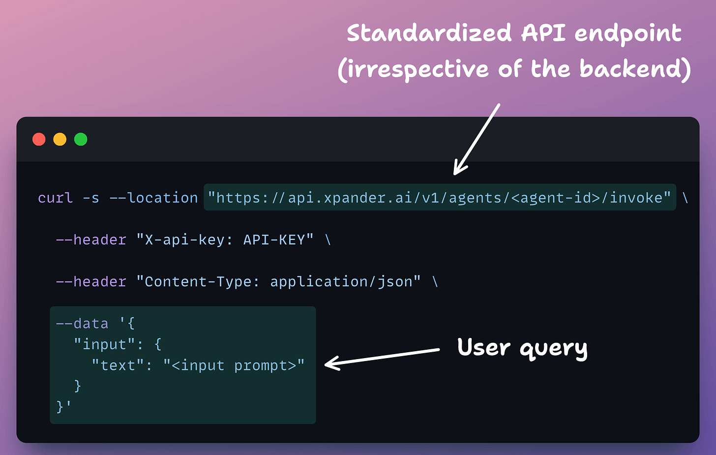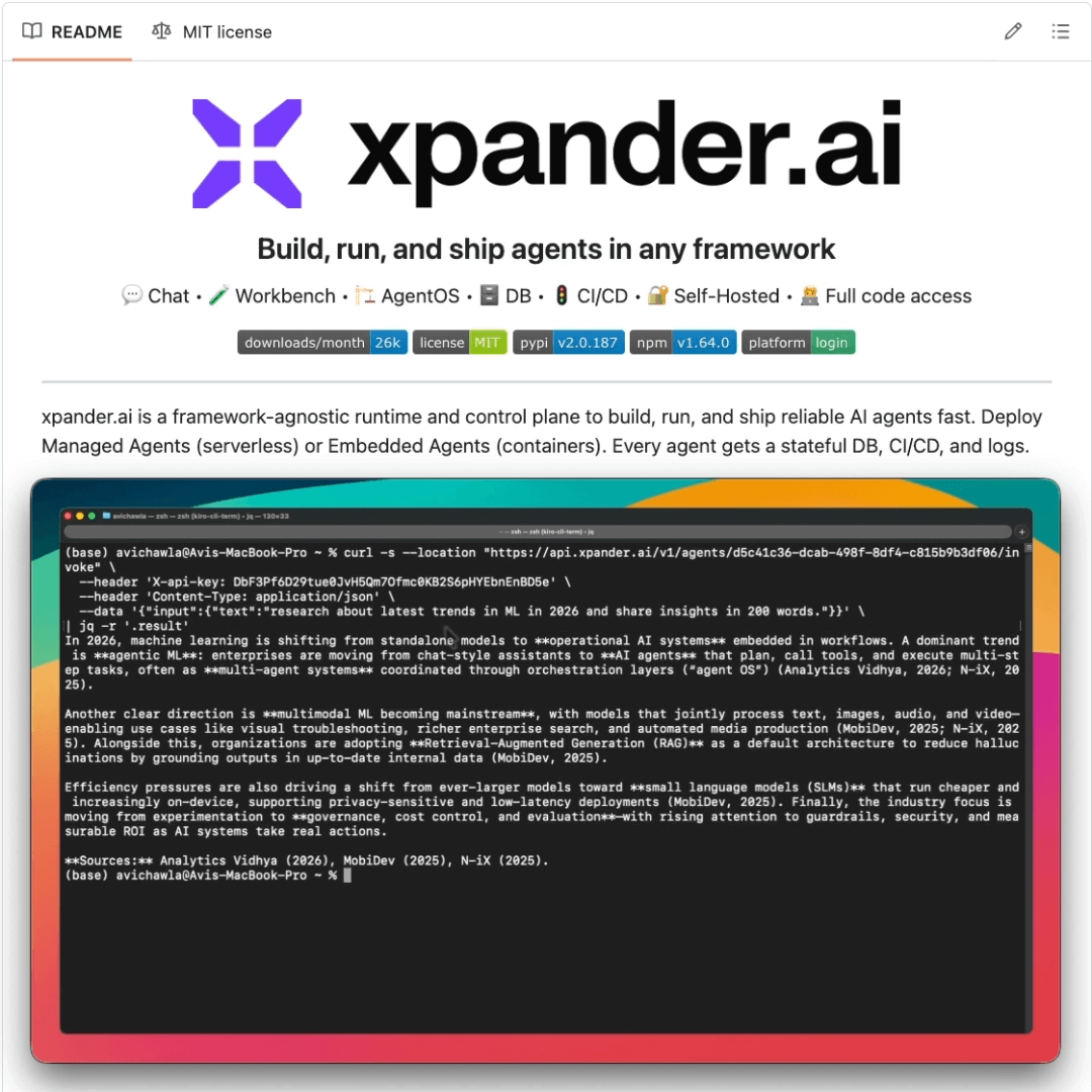 xpander, however, provides one API contract over every agent, so the consuming app doesn’t need to know what framework the agent was built in.