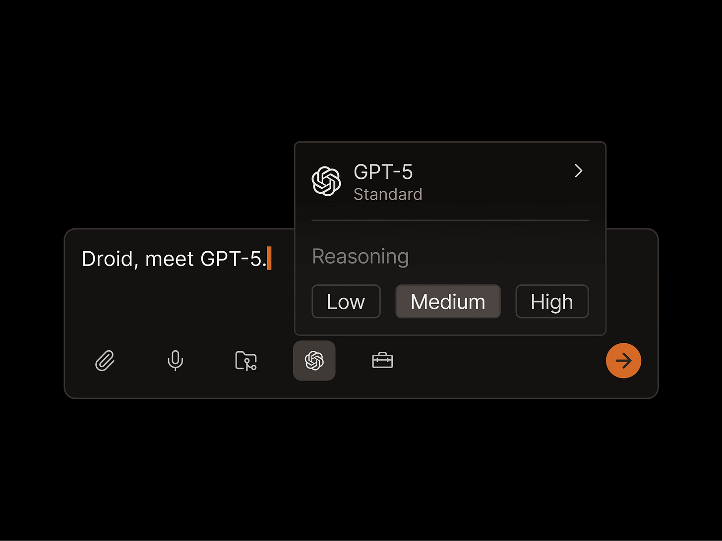 Within Factory, GPT-5 enables you to delegate software development tasks to Droids with confidence.