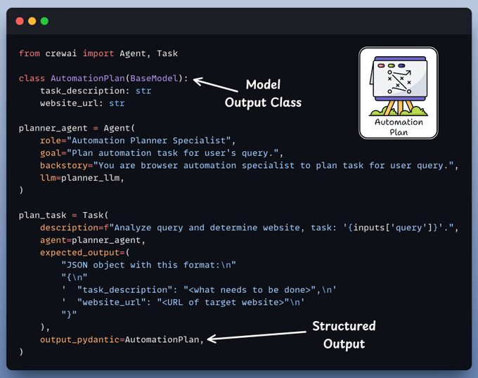 The planner agent receives an automation task from the user and creates a structured layout for execution by the browser agent.