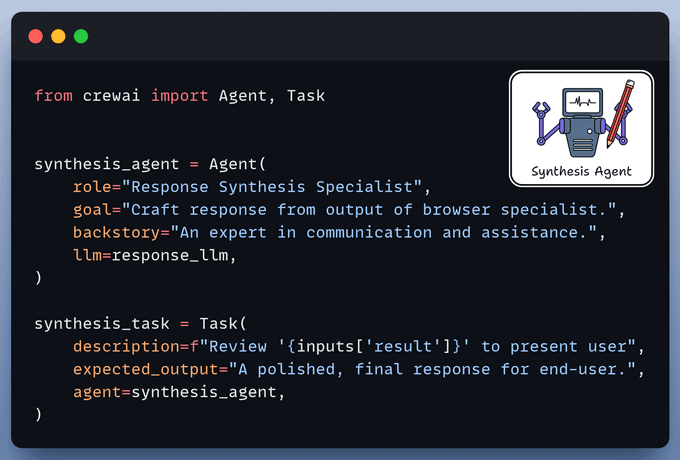 Synthesis Agent acts as final quality control, refining output from the browser automation agent to generate a polished response.