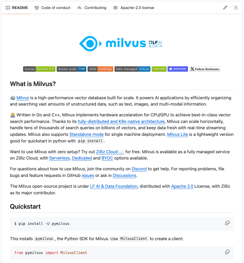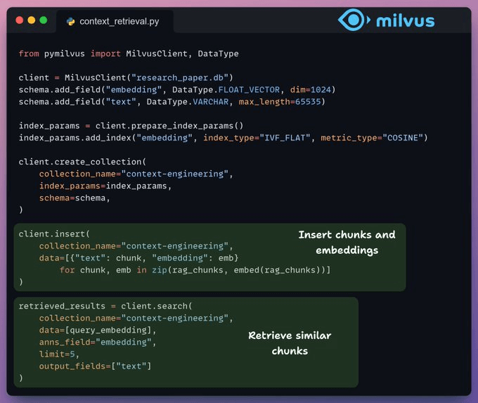 Now that we have RAG-ready chunks along with the metadata, it's time to store them in a self-hosted Milvus vector database.