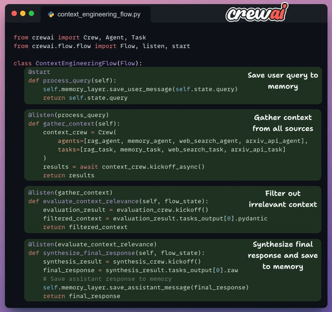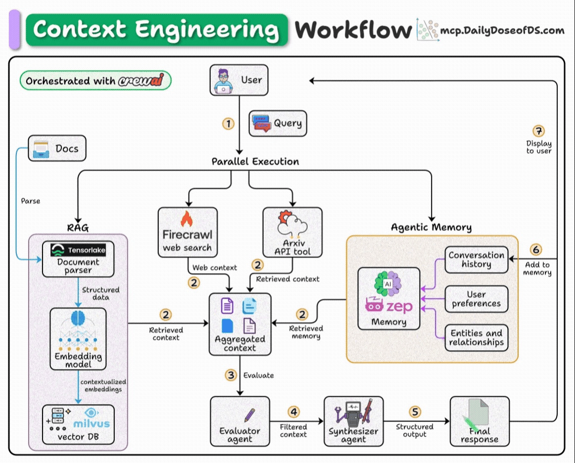 Note that this is one of many blueprints to implement a context engineering workflow. Your pipeline will likely vary based on the use case.