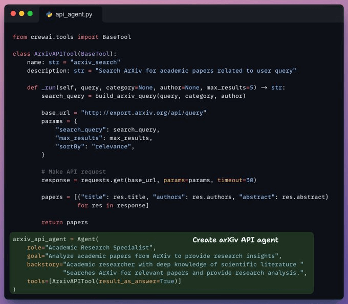 To further support research queries, we use the arXiv API to retrieve relevant results from their data repository based on the user query.