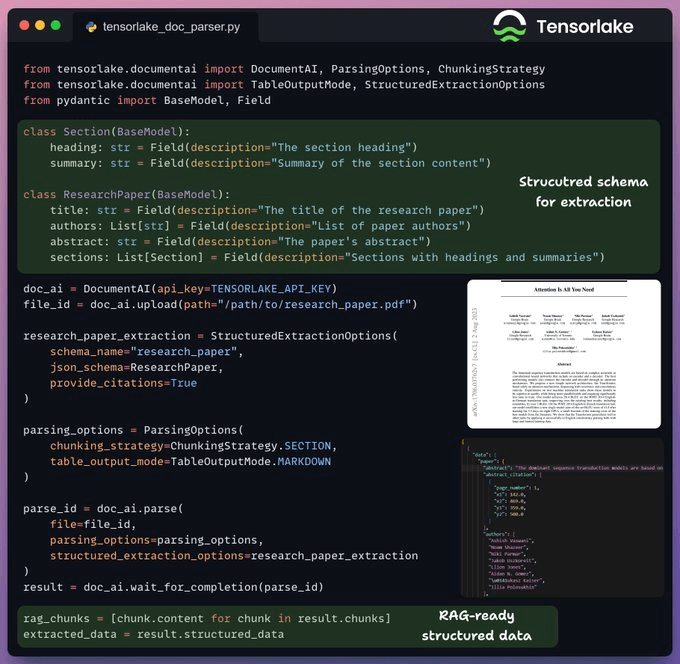 We use Tensorlake to convert the document into RAG-ready markdown chunks for each section.
