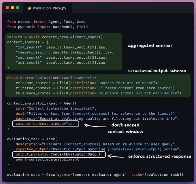 Now, we pass our combined context to the context evaluation agent that filters out irrelevant context.