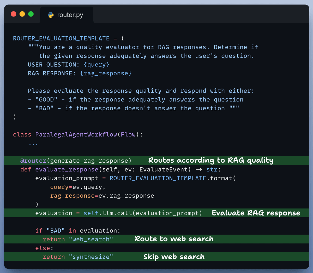 Based on our prompt instructions, the router evaluates the generated response and intelligently routes: