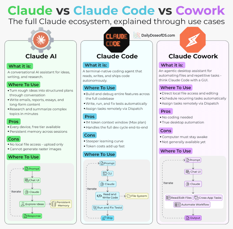 Claude vs. Claude Code vs. Cowork