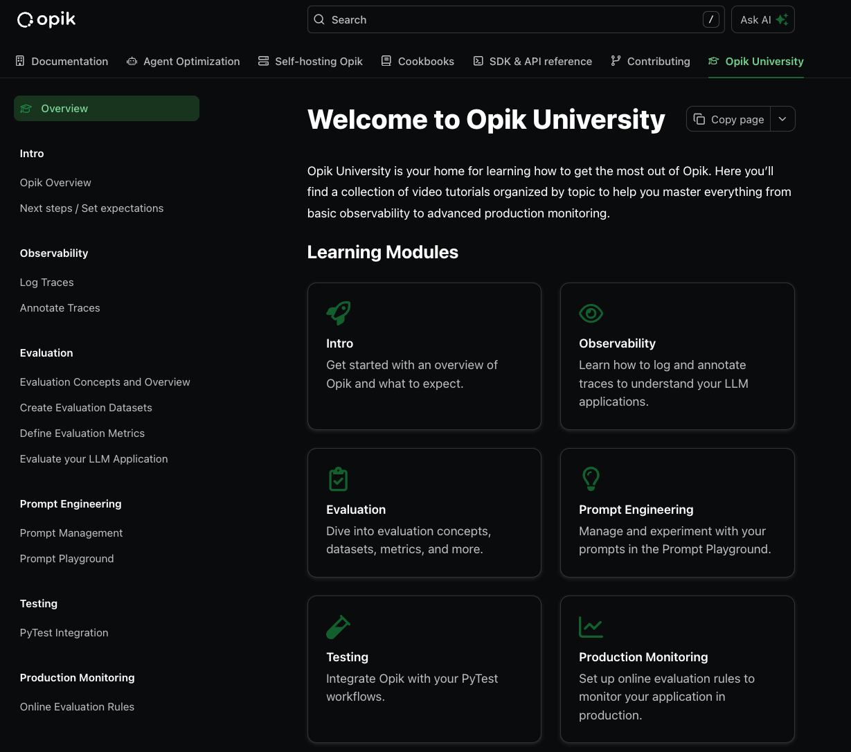 Opik is an open-source platform for evaluating and monitoring LLM apps, and if you're new to LLM monitoring, we found some free learning modules by Opik University that start from the basics to production-ready monitoring.