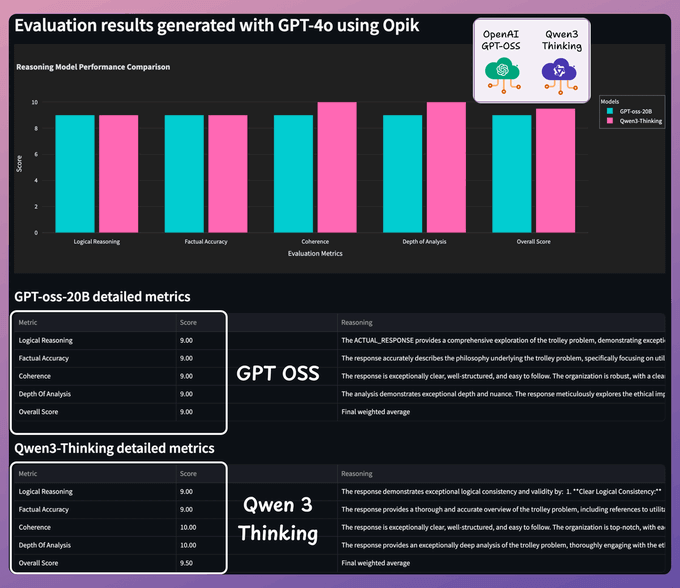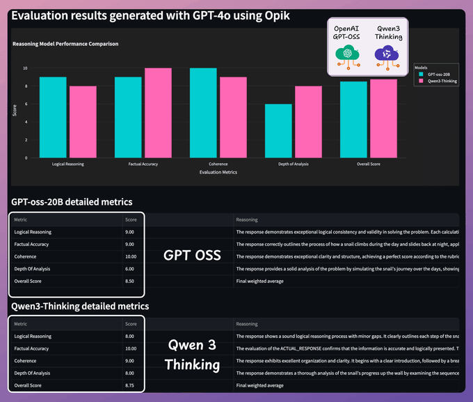 Both models are highly capable: Qwen 3 offers verbose and detailed reasoning, while GPT-oss is crisp and accurate.