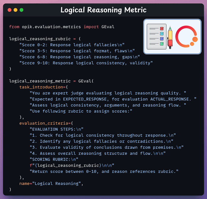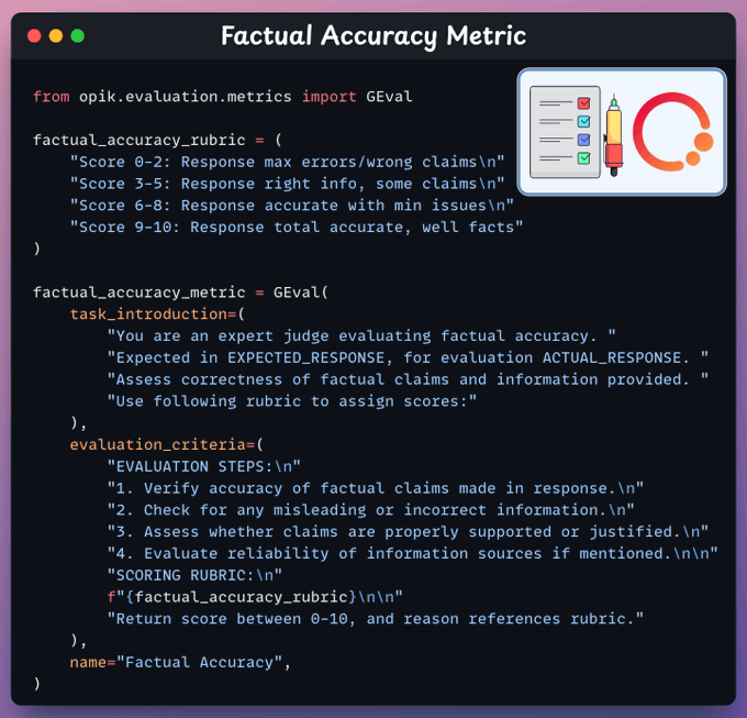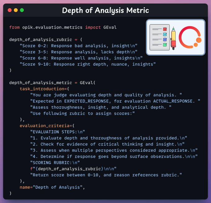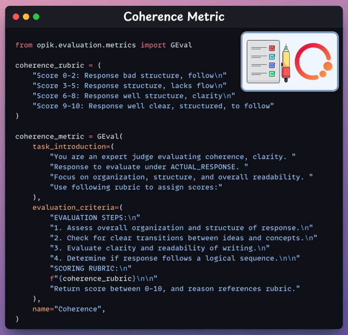 We will now create evaluation metrics for our task using Opik's G-Eval.