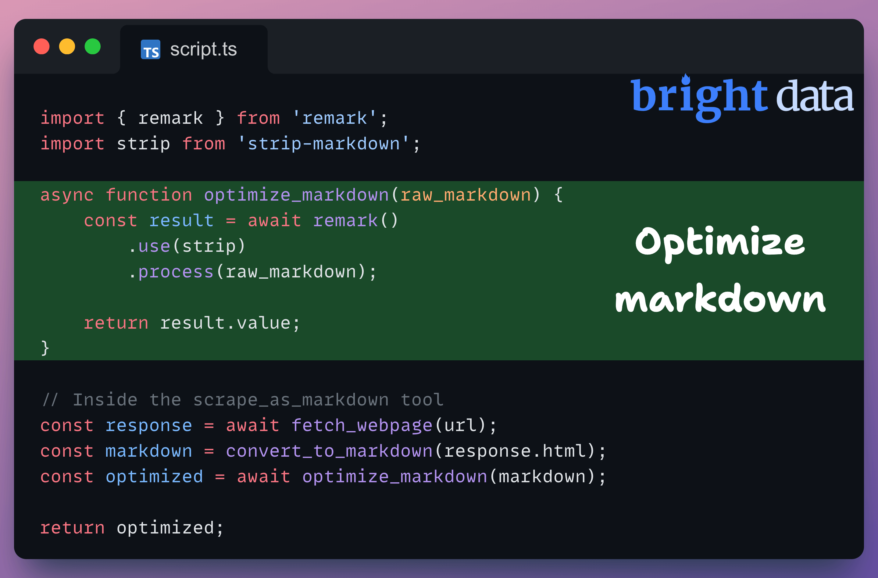 For instance, when you scrape a web page, raw markdown includes formatting the LLM doesn’t need: