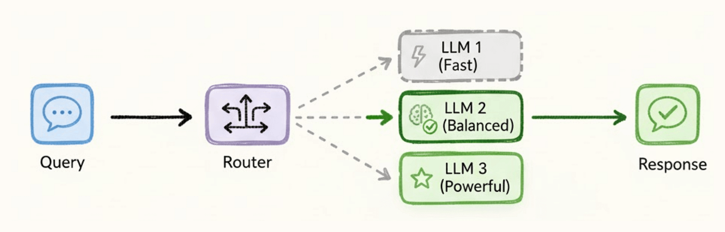 It reads each incoming prompt, classifies the task, and routes it to the model best suited for the job. Simple queries go to fast, cheap models.