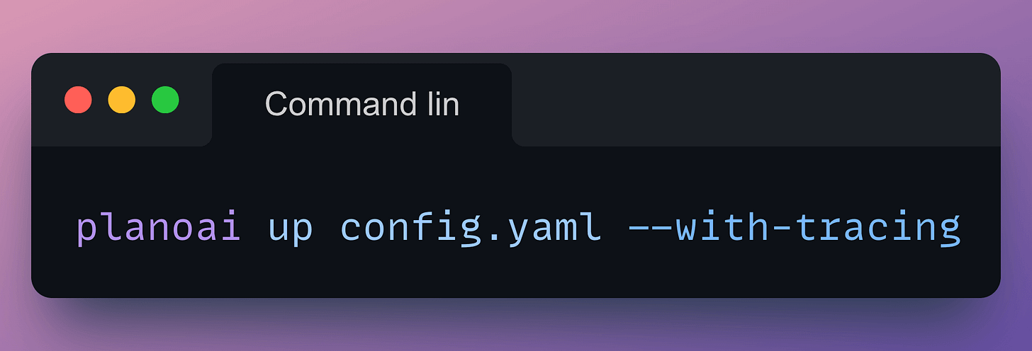 Now that the configuration file is created and environment variables are defined in a .env file, you start Plano with the following command: