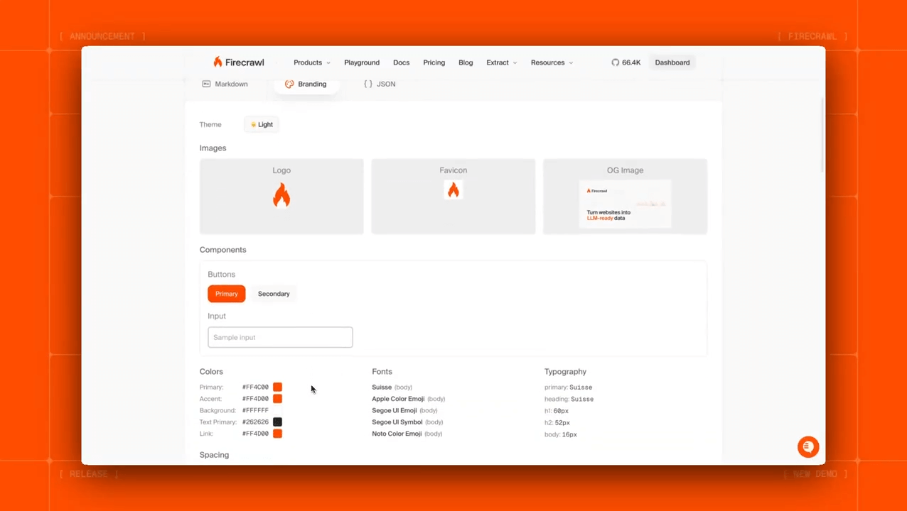 You can now extract complete brand DNA from any website, including color schemes, logos, frameworks, and more in one API call to Firecrawl.