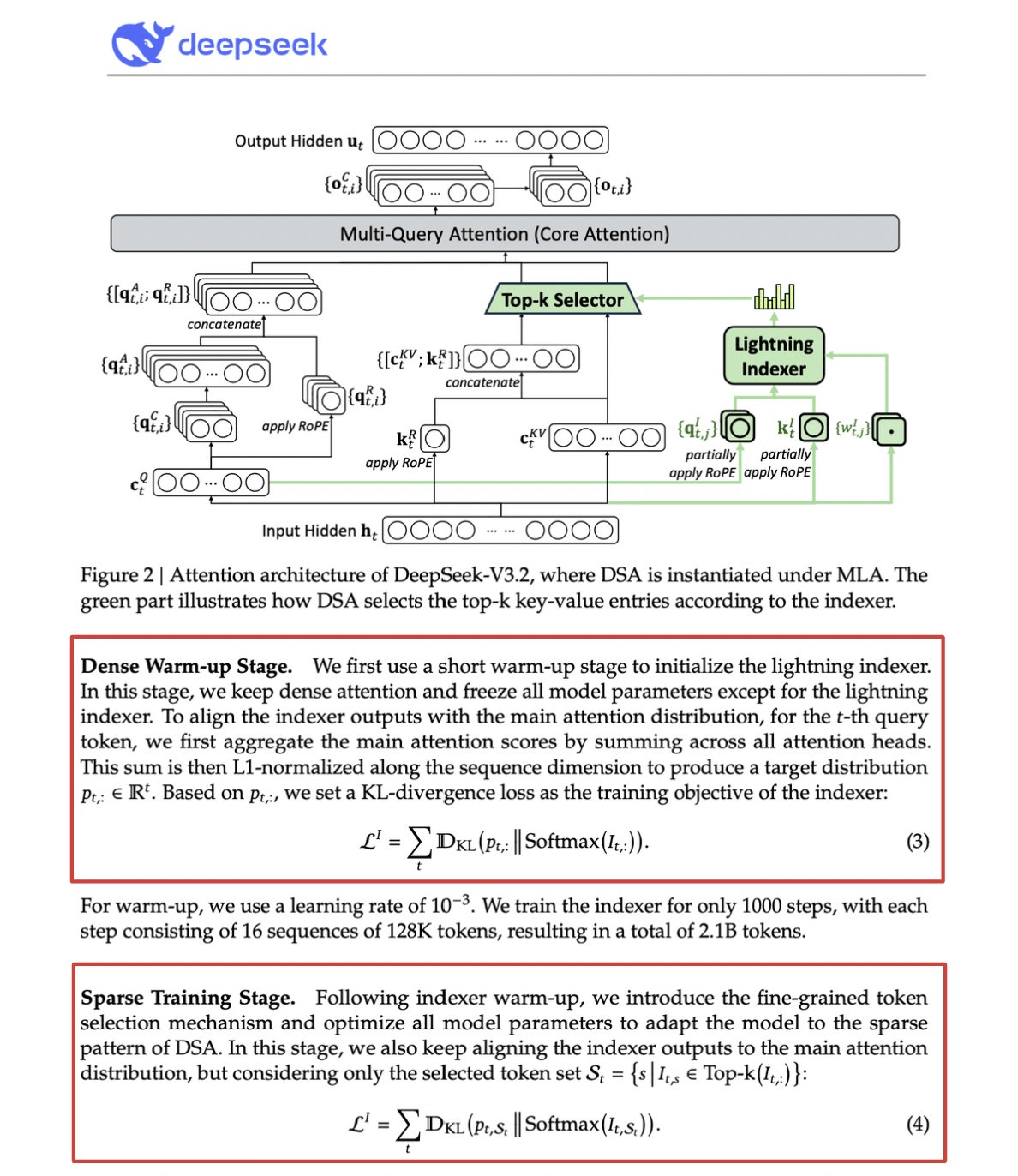DeepSeek cracked it with a two-stage training process, first aligning the indexer using KL-divergence, then training the full model to adapt to sparse patterns.
