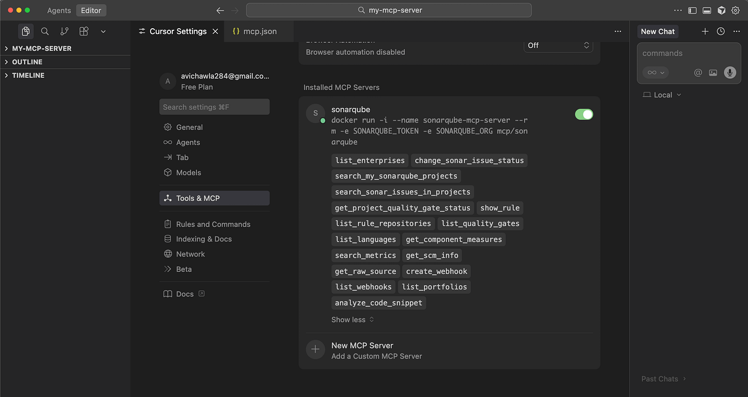 Finally, head over to Cursor and add the following MCP config: