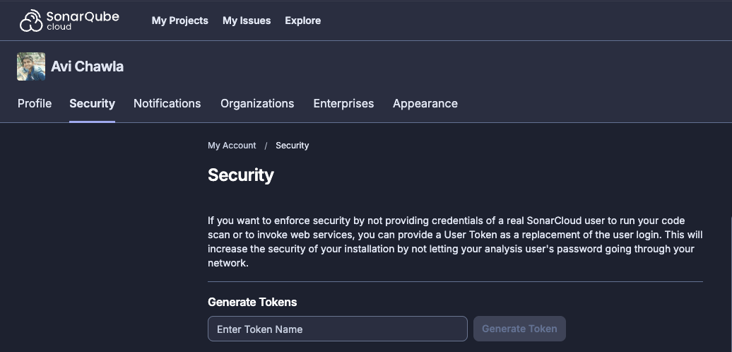 In Security, generate your new token: