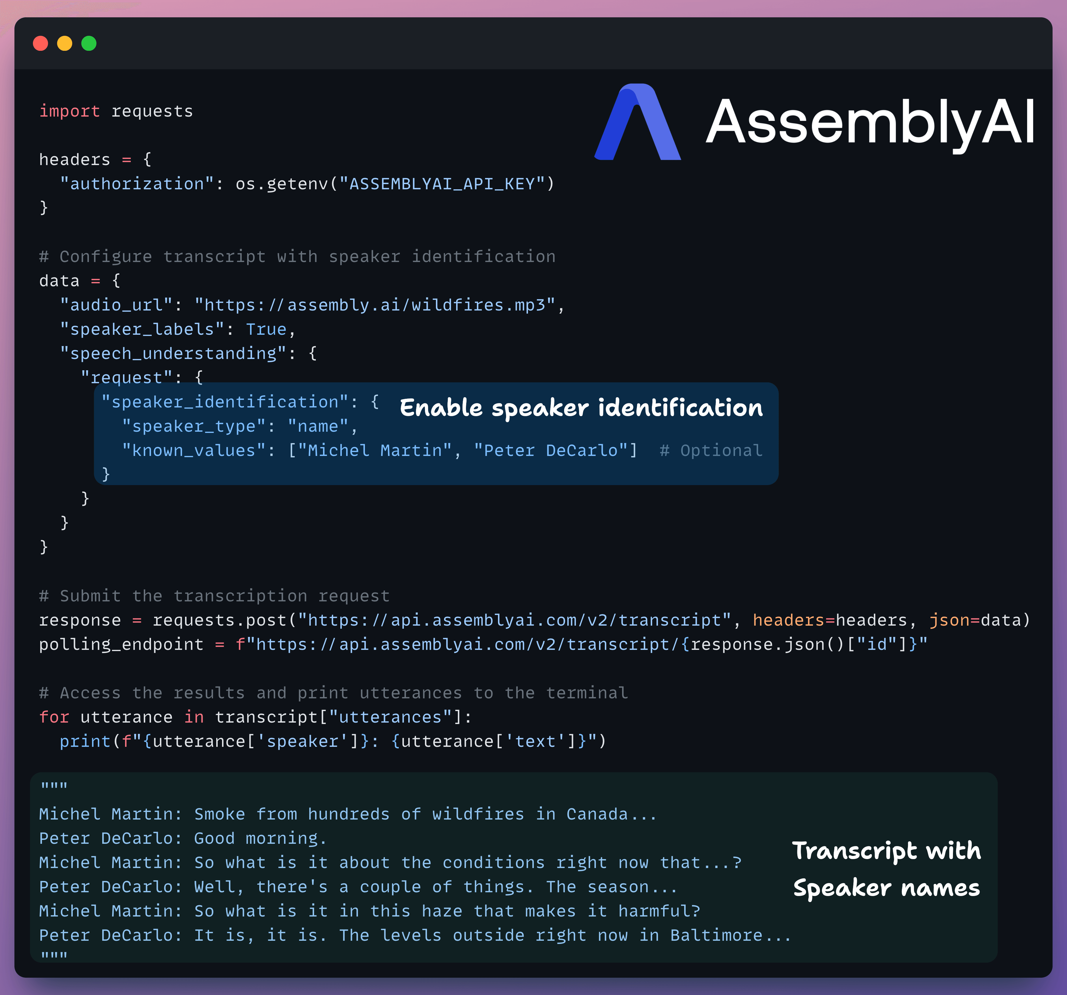 Speaker Identification can now infer names/roles directly from speech and lets you seed known values if available.