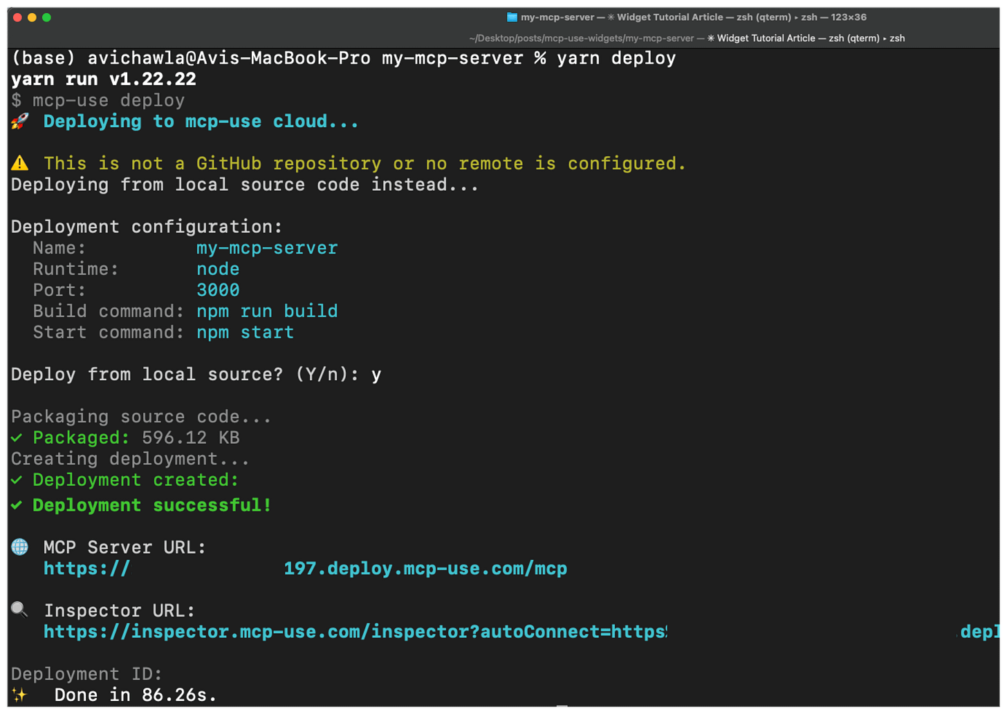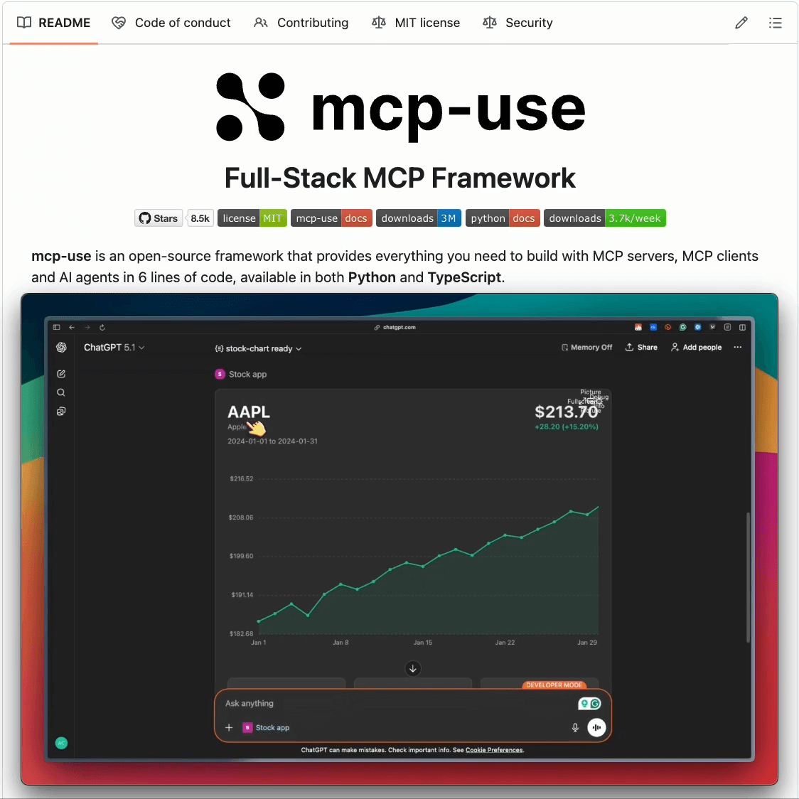 Also, the UI Widgets you create with mcp-use are in the MCP Apps standard, which is inspired by MCP-UI and OpenAI’s Apps SDK to allow MCP Servers to display interactive UI elements in conversational MCP clients or chatbots.