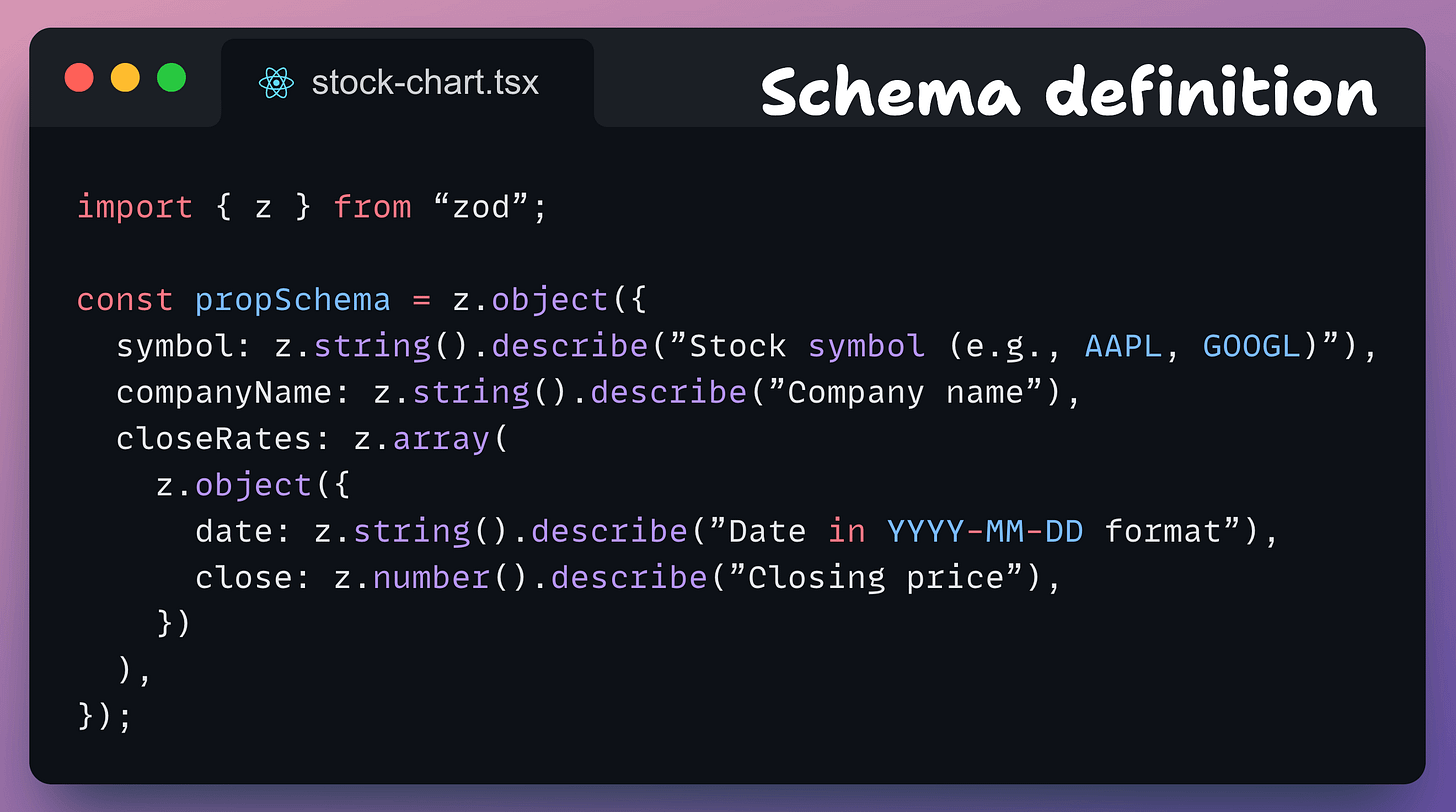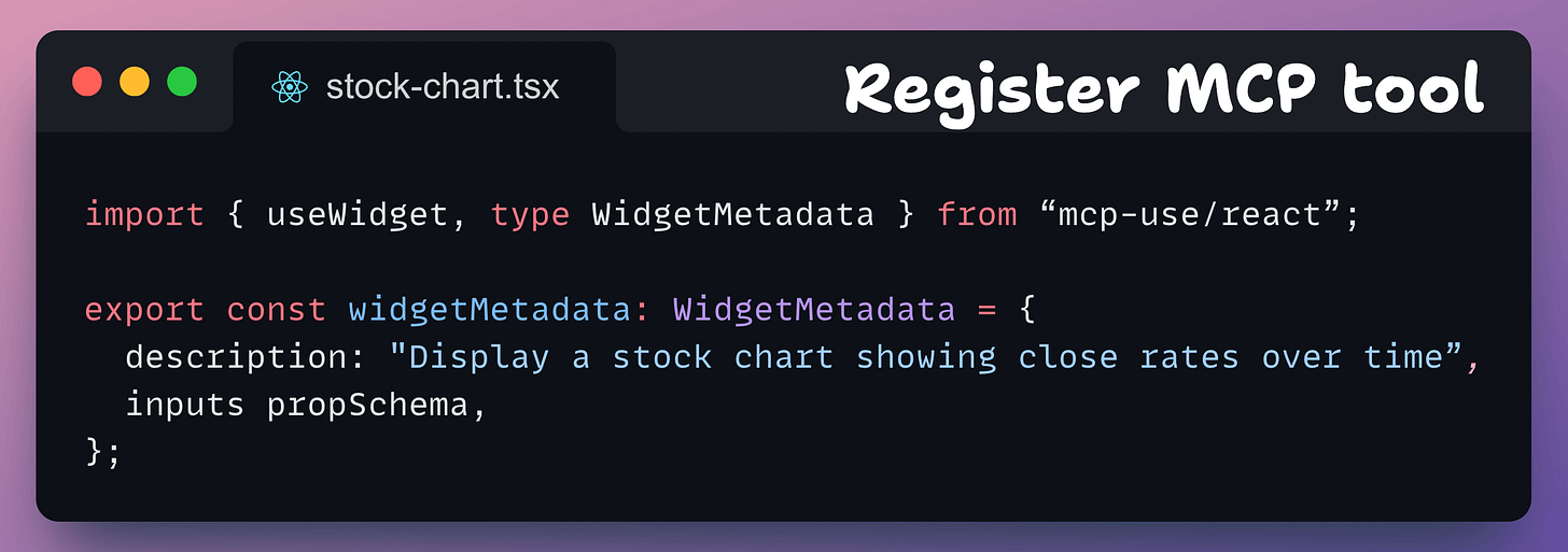 }Displaying this as a visual element isn’t impossible, but most MCP servers make you write the same boilerplate twice, once for the React component and again to register it as an MCP tool.