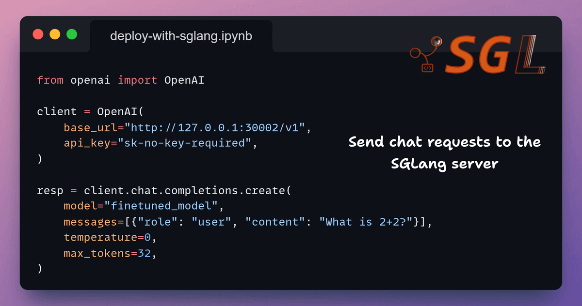 Since SGLang exposes an OpenAI-compatible API, no custom tooling is required.