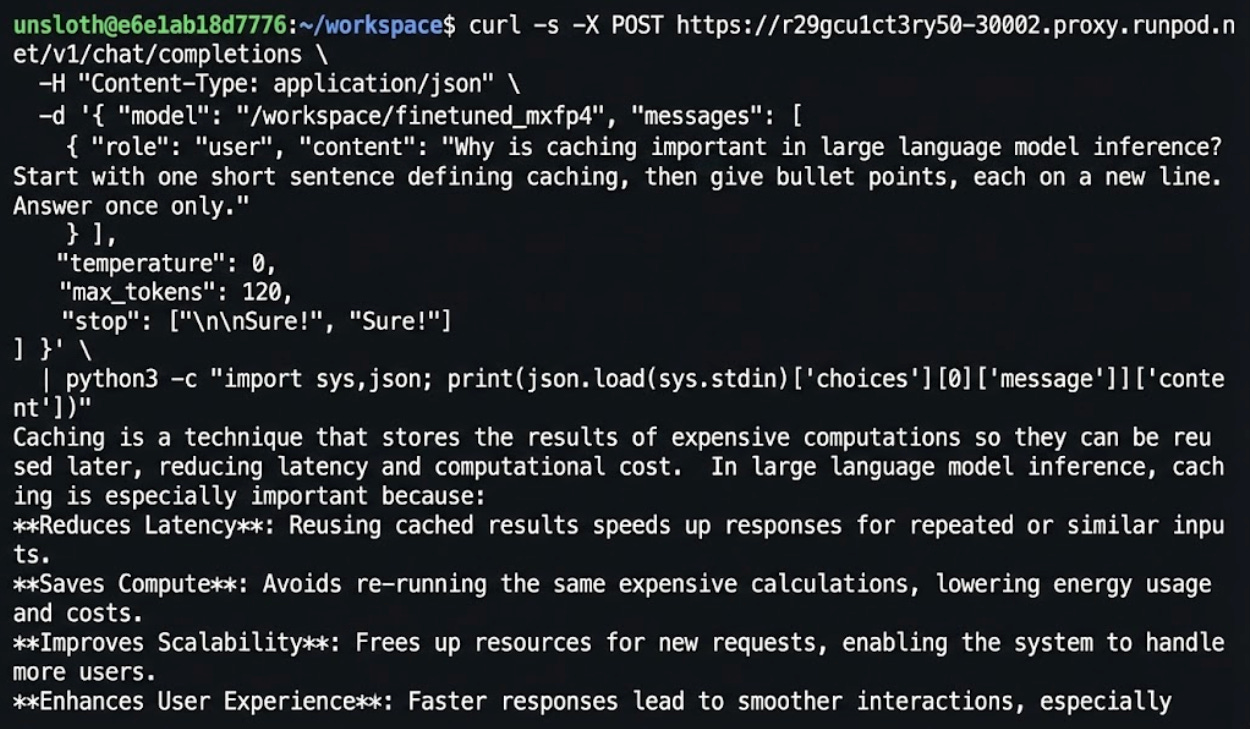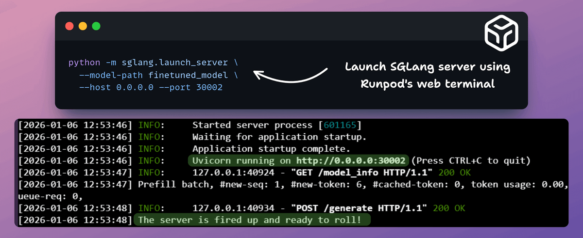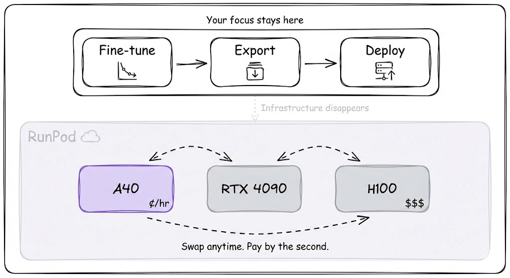 The entire workflow we showed above runs on RunPod. Fine-tuning, export, deployment, all on the same infrastructure.